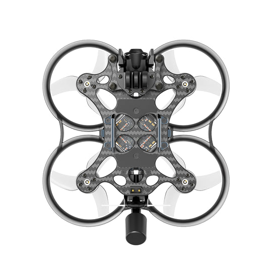 Pavo25 V2 Brushless Quadcopter (ELRS 2.4G, Excludes HD Digital VTX) Pavo25 V2 is the new cinewhoop drone from BETAFPV. The new design can increase additional thrust by 200g and a CNC 7075 Y-shaped frame that eliminates distortion and bending during flight while accommodating common HD VTX and Naked Action Cams. The new powerful propulsion system boosts power for up to 8 minutes of flight, guaranteeing the smoothest, most powerful and most responsive flight. Function - The Pavo25 V2 is specifically designed to seamlessly integrate with the DJI O3 air unit, addressing the previous limitation of the Pavo25's inability to meet O3 compatibility. - Innovative Y-shaped CNC metal support structure for better structural strength, resistance to torsion and vibration of the whole machine compared to aluminum frames, making it respond faster and smoother. - The rocket engine-inspired propeller guard design improves lateral stability and increases thrust by 200g compared to propellers without a guard, giving the Pavo25 V2 stronger performance and a better flying feel. - The frame is riveted and assembled. The new appearance and design concept allow for easier installation and stronger construction. - Offers exceptional mounting options and supports not only DJI O3, Walksnail and HD VTX installations, but also works seamlessly with lightweight cameras such as Naked GoPro 12, DJI Action 2 and InstaGo 3. - F722 35A AIO Brushless Flight Controller comes with F722 chip, this board provides great performance and high processing speed up to 128k PWM frequency, - The COB light strip assembly, which can be turned on and off remotely, allows pilots to enjoy flying in all light conditions. Specifications Item: Pavo25 V2 Brushless Quadcopter Size: 112 mm FC: F722 35A AIO V2 Engine: 1506 | 4200 KV Battery Connector: Fixed XT30 Frame: Pavo25 V2 Brushless Whoop Frame VTX Support: DJI O3 Air Unit, Walksnail Avatar HD Pro Kit, Caddx Vista Kit/RUNCAM Link, Analog Camera Camera support: DJI O3, Avatar HD Pro Caddx, RUNCAM series 19mm & 20mm HD, Analogue 19mm Flight time: 6~8 min Propeller: GF D63 3-Blade RX version: ELRS Recommended battery: 4S 650mAh – 850mAh The package contains: 1 x Pavo25 V2 Brushless Quadcopter (ELRS 2.4G) 1 x COB Light Strip Accessory Pack 4 x GF D63 3-Blade Propellers 1.5mm Shaft (Transparent Grey) 1 x Gopro Mount 1 x Camera mount (left) 1 x Camera Mount (Right) 4 x M1.6 * 8 Hex Flat Head Screw 4 x M2 * 3 Hex Flat Head Screw 4 x M2 * 8 Hex Flat Head Screw 4 x M2 * 4 Hex Head Screw 2 x M2 * 5 Hex Head Screw 2 x M2 * 8 hex head screw 1 x M5*18 hex head screw 1 x M5 * 5 Anti-loose nut 1 x H1.27 hex key 1 x Service card 1 x Instructions for use of the frame 1 x Flight Controller Instruction Manual
