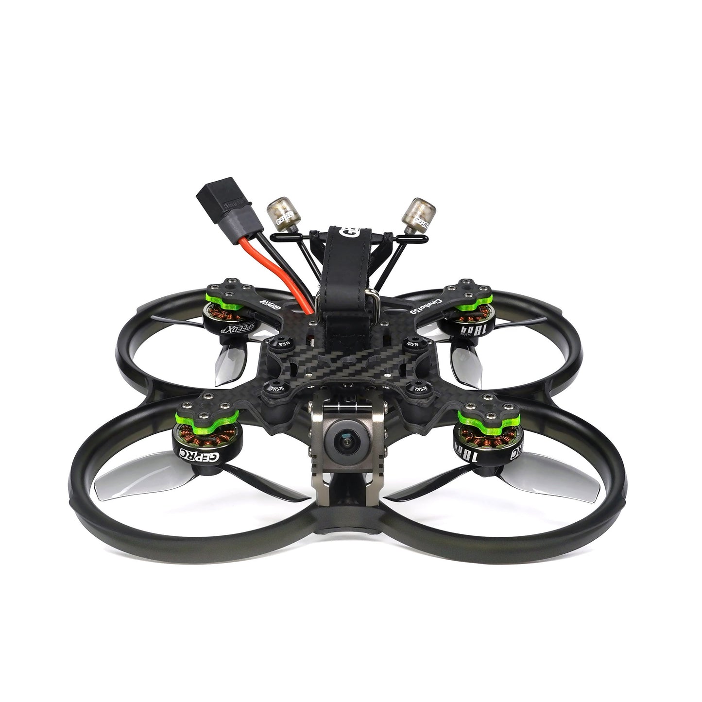 Cinebot30 HD Avatar TBSNanoRX (4S) Cinebot30 is a new generation of Cinematic FPV drones. It has a high-strength 7075 aircraft aluminum alloy frame and an FPV camera. The gimbal damping module can easily solve the problems of high frequency vibration and image shake. It can be mounted with GEPRC Naked GP8 and GP Black Bones, Insta 360 GO2 and other cameras. The image is stable and clear. The drone has a high-strength one-piece propeller cover made of impact-resistant material. A Cob ring light strip is embedded in the propeller cover, and the lighting effect is carefully tuned. The base of the drone is a carbon fiber plate and thanks to it all components are protected. The Cinebot30 is equipped with a powerful 1804 motor with an optimized magnetic motor circuit and high torque that can handle ultra-low shooting with ease. With the HQ T76mm*3 propeller, it has the lowest noise effect in its class. Using the GEP-F722-45A AIO v2 flight controller, higher performance redundancy and easy handling of unexpected situations. Finely polished frame construction, only 6 screws need to be removed to separate the top plate of the drone and the protective frame. Thanks to this, you can easily change accessories wherever you need them. Specifications Model: Cinebot30 HD AVATAR quadcopter Brand: GEPRC Frame: GEP-CT30 Wheelbase: 127 mm Insulation board: 2 mm Main plate: 3 mm Bottom plate: 1.5 mm FC: GEP-F722-45A AIO V2 MCU: STM32F722RET6 IMU: ICM-42688-P VTX: Walksnail Avatar Camera: Walksnail Avatar micro Propeller: HQ propeller T76mm Antenna: Peano 5.8G 110mm LHCP UFL antenna Charger connector: XT60H-M Motor: SPEEDX2 1804-2450KV (6S version)/ SPEEDX2 1804-3450KV (4S version) Weight: Nebula Pro version 222.5g / Avatar version 221g / Analog version 209.2g / Link Wasp version 222.5g (without battery, above are TBS Nano RX versions) Receiver: PNP, Frsky R-XSR, TBS Nano RX, ELRS 2.4G Recommended battery: LiPo 4S 1100mAh-1300mAh (4S version) / LiPo 6S 850mAh-1100mAh (6S version)