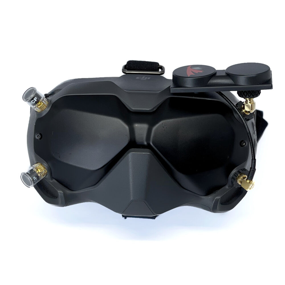 Visi tvirtinimo priedai, skirti montuoti ant DJI FPV akinių, yra komplekte.