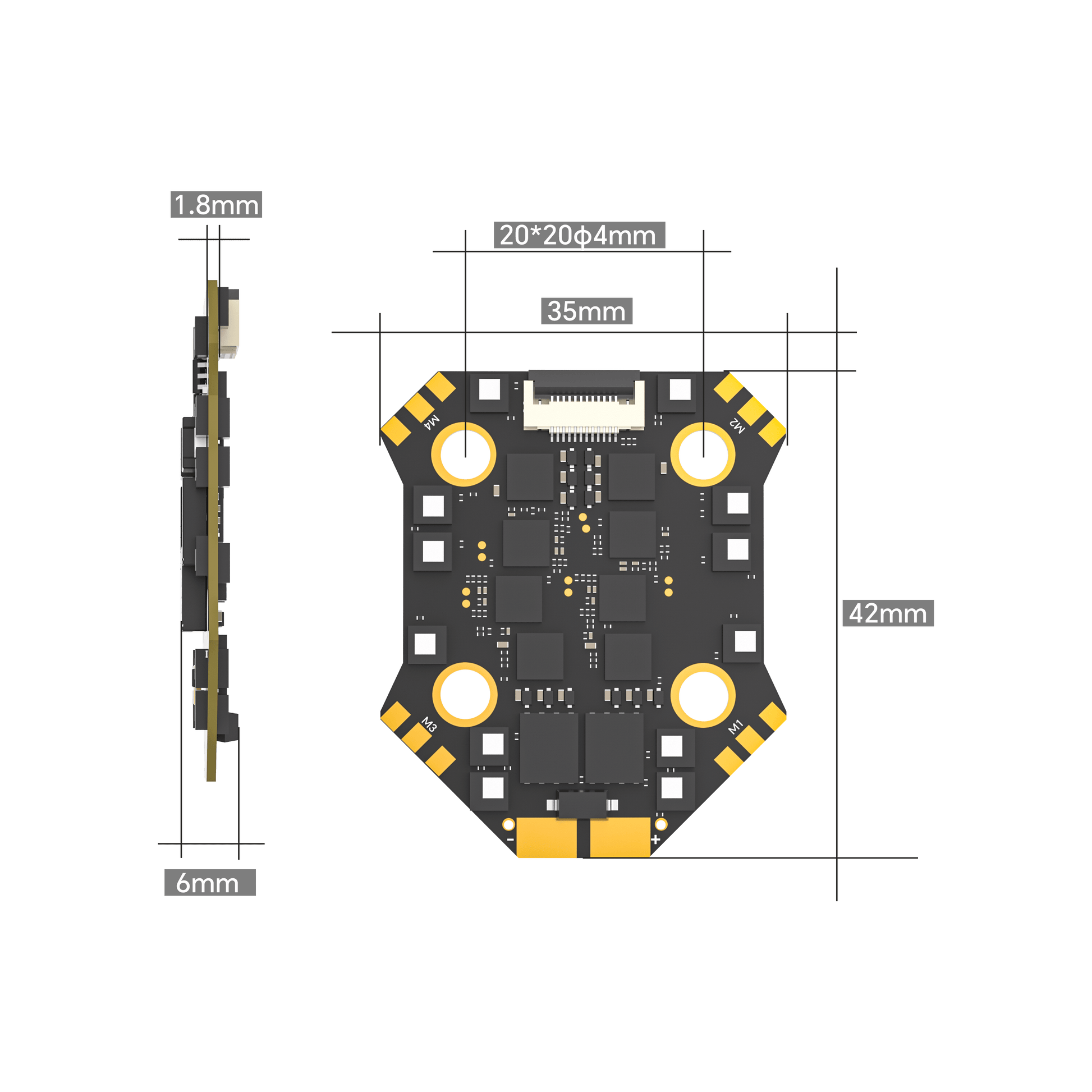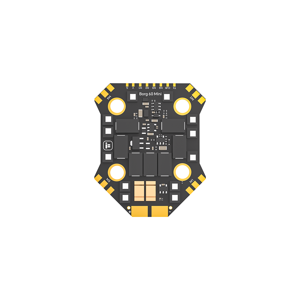ESC iFlight Borg 60R Mini Sukurtas didelio našumo FPV lenktynėms, „iFlight Borg 60R Mini ESC“ turi integruotą apsaugos nuo kibirkščių grandinę, kuri apsaugo komponentus nuo žalingų įtampos šuolių. Dėl įmontuotų aukštos polimerų kondensatorių šis 60 A ESC pašalina išorinių kondensatorių poreikį 5 colių konstrukcijose, supaprastindamas montavimą ir sumažindamas svorį. Jis palaiko platų 2–6S LiHV akumuliatorių įėjimo įtampos diapazoną, siūlo telemetriją ir yra suderinamas su dvikrypčiu DSHOT, kad būtų galima tiksliai valdyti skaitmeninį režimą. „Borg 60R Mini“ veikia su BLHeli_32 programine įranga ir naudoja galingą STM32G071N MCU bei FD6288 tvarkykles, kad būtų užtikrintas sklandus ir jautrus veikimas, kurio reikalauja varžybų pilotai. Techninės specifikacijos: Produkto pavadinimas: Borg Mini 60 ESC Įvesties įtampa: 2-6S LiPo / LiHV Maksimali nuolatinė srovė: 60A Maksimali srovė: 65A (10s) Mikrokontroleris: STM32G071N Vairuotojas: FD6288 Programinė įranga: BL32 (32 bitų) Taikinys: IFLIGHT_BLITZ_G3 32.9 BEC: Nėra Telemetrija: Palaikoma Srovės jutiklis: Taip Dvikryptis DSHOT: Palaikoma Palaikomi protokolai: DShot150/300/600, MultiShot, OneShot Matmenys: 42 × 35 mm ±1 Tvirtinimo angos: 20 × 20 mm / Φ4 mm Svoris: 9,8 g ±1 Pakuotės turinys: 1 × Borg 60 Mini ESC 1 × Kabelių rinkinys 4 × silikoninės įvorės