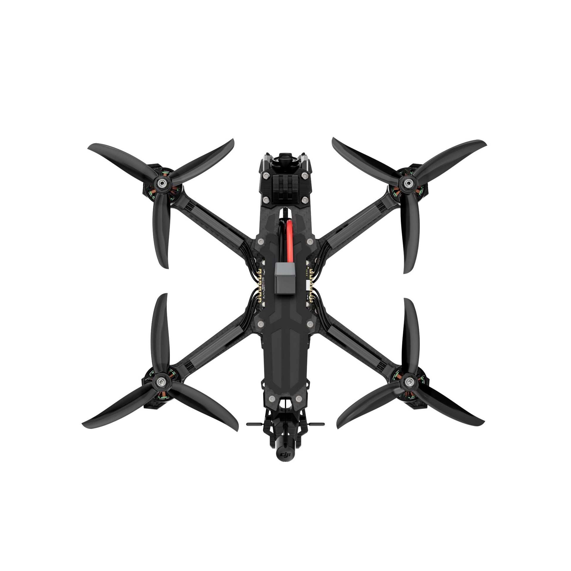 FPV dronas GEPRC Vapor-X5 HD O3 TBS NanoRX „Vapor-X“ yra tvirtas ir manevringas FPV dronas, skirtas laisvojo stiliaus skraidymui. Pavadinimas „Vapor-X“ reiškia laisvojo stiliaus skrydžio stilių ir unikalią plačią X formos rėmą. Dronas aprūpintas TAKER H60_BLS 60A 4IN1 ESC ir GEP-F722-HD v2 skrydžio valdikliu, kurie užtikrina išskirtinai sklandų skrydį. CNC aliuminio šoninės plokštės, apsaugančios kamerą, padidina patvarumą ir estetiką. Modelis tiekiamas 5 ir 6 colių versijų, kad atitiktų skirtingus pilotų pageidavimus ir pasiūlytų neprilygstamą skrydžio patirtį. Savybės: Įrengtas TAKER H60_BLS 60A 4IN1 ESC ir GEP-F722-HD v2 skrydžio valdiklis, užtikrinantys išskirtinai sklandų skrydį. Kartu su GEPRC SPEEDX2 serijos varikliais užtikrinamas tvirtas našumas laisvojo stiliaus skraidymui. CNC aliuminio šoninės plokštės, apsaugančios kamerą, padidina patvarumą ir estetiką. Priekinio objektyvo apsauga užtikrina saugumą skrydžio metu. Padidintas 5 mm anglies pluošto svirčių plotis padidina rėmo estetiką ir tvirtumą. Galima įsigyti 5 ir 6 colių versijų, kad tiktų skirtingiems skraidymo stiliams. Specifikacijos: Modelis: Vapor-X5 O3 Rėmas: GEP-Vapor-X5 rėmas Važiuoklės bazė: 230 mm Viršutinė plokštė: 2,0 mm Vidurinė plokštė: 2,0 mm Apatinė plokštė: 2,5 mm Rankenos storis: 5,0 mm Skrydžio valdiklis: GEP-F722-HD v2 Mikrokontroleris: STM32F722 Giroskopas: ICM42688-P (SPI) Barometras: BMP280 OSD: „Betaflight“ OSD su AT7456E ESC: TAKER H60_BLS 60A 4IN1 ESC VTX: O3 oro blokas Kamera: O3 kamera Antena: originali O3 antena Jungtis: XT60 Papildomas GPS modulis: GEP-M10 GPS 5 colių varikliai: GEPRC SPEEDX2 2207E 1960 KV 5 colių sraigtai: GEMFAN 5136 „Vapor-X5 O3 PNP“ versijos svoris: 419,5 g ± 5 g Imtuvas: TBS Nano RX Rekomenduojama baterija: LiPo 1550mAh – 2200mAh Skrydžio laikas: 14–19 minučių Pakuotėje yra: 1x Vapor-X5 O3 2x GEMFAN 5136 2x Neslystantys kilimėliai po akumuliatoriumi 1x Atsarginių varžtų rinkinys 2x Akumuliatoriaus dirželiai M20 * 250 mm 1 x L formos atsuktuvas 1,5 mm 1 x L formos atsuktuvas 2,0 mm 1x GoPro laikiklis