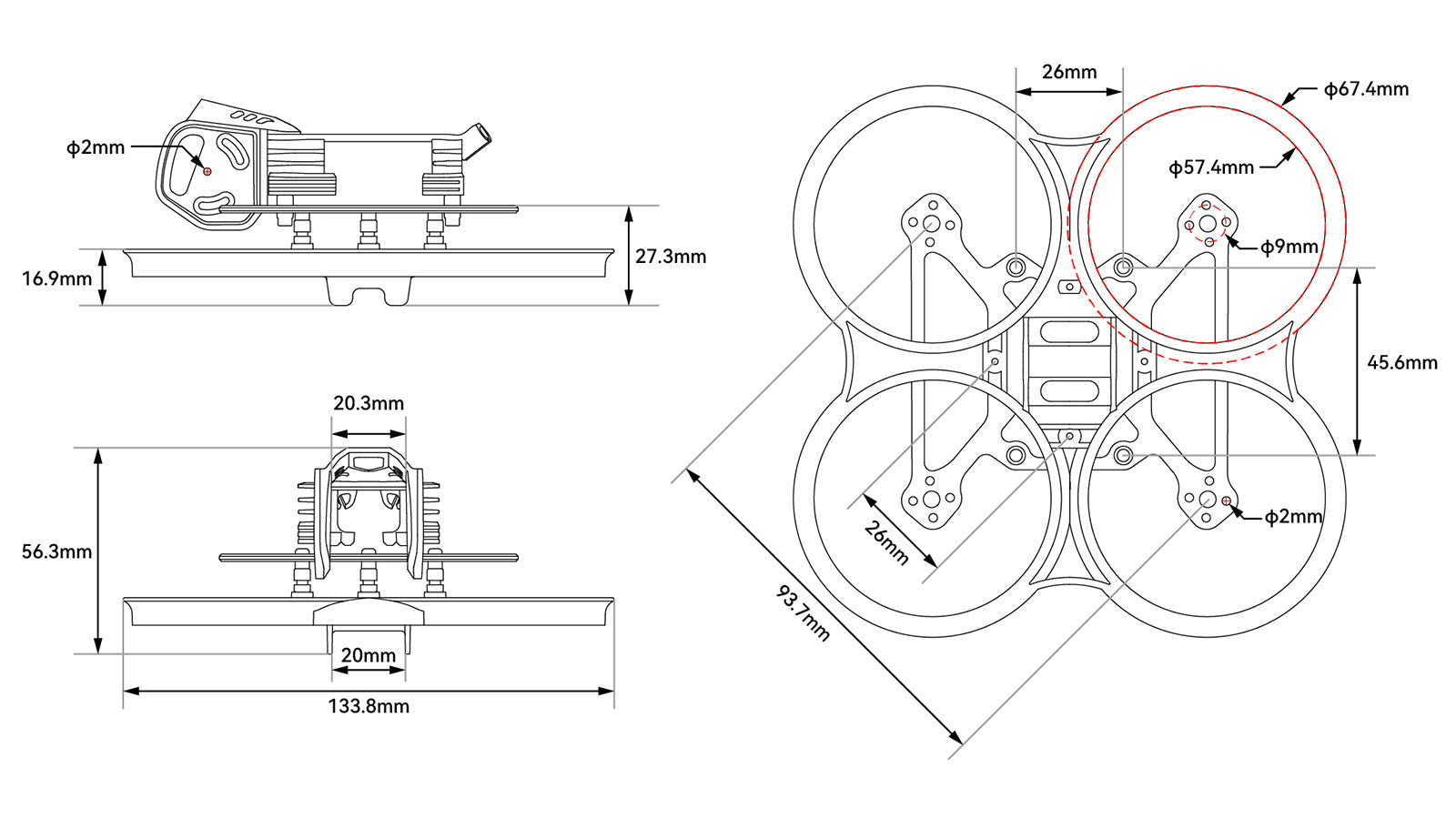 Rėmas BETAFPV Pavo20 Pro bešepetis Whoop O4 Pro juodas „Pavo20 Pro Brushless Whoop“ rėmas yra specialiai sukurtas „Pavo20 Pro cinewhoop“ dronui su 2,2 colio propeleriais. Dabar jis siūlo platesnį suderinamumą su „DJI O3 Air Unit“, „Caddx Vista“, „RunCam Link“ ir naujausiu „DJI O4 Air Unit Pro“ – sklandžiai derinamas su „O4 Pro“ laikikliu, kad būtų didesnis stabilumas ir universalumas. Dėl 93,7 mm ratų bazės ir patvarios PA12 konstrukcijos su sustiprintais „whoop“ kanalais rėmas užtikrina didelį tvirtumą ir aerodinaminį efektyvumą, padidindamas pasipriešinimą 8–11 %. Kartu su galinga 3S pavara jis sukuria nepaprastą našumą laisvojo stiliaus ir filmavimo skrydžiams. Rėmas turi porą tvirtinimo angų „DJI O3“ ir „O4 Pro“ kameroms plataus kampo fotografavimui ir patikrintą guminių amortizatorių sistemą, kuri užtikrina sklandžius HD kadrus be vibracijos. Specifikacijos: Važiuoklės bazė: 93,7 mm Medžiaga: PA12/PP Viršutinės plokštės storis: 2 mm Rėmo svoris: 35,7 g (su „O4 Air Unit Pro“ laikikliu) „Whoop“ kanalų svoris: 17,8 g Laikiklio svoris: 7,2 g („O4 Air Unit Pro“ laikiklis) Spalva: juoda Kameros tvirtinimo žingsnis: 19 mm / 20 mm FC tvirtinimo angų dydis: 26x26 mm Variklio tvirtinimo angos dydis: 4-M2-φ9mm Baterijos lizdo plotis: 20 mm Kameros filtras: Palaikomas Pakuotėje yra: 1 x „Pavo20 Pro“ bešepetis „Whoop“ rėmas 1 x O4 Air Unit Pro laikiklis 6 x guminiai amortizatoriai 6 x M2 * 10 varžtai 6 x M2 * 4 varžtai